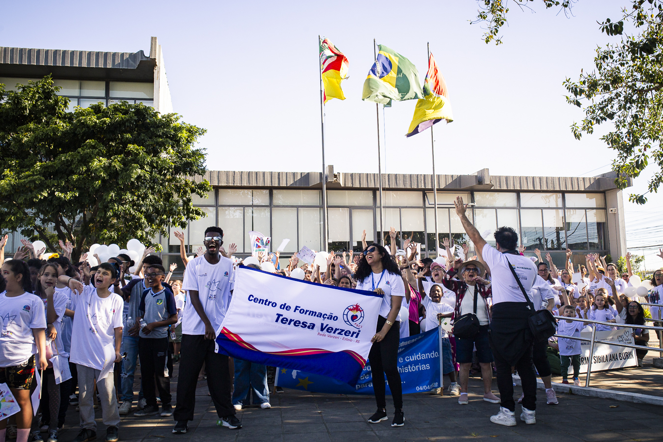 A caminhada teve início na sede do Centro de Formação, seguindo pela Avenida Padre Claret, Avenida Presidente Vargas e encerrando no Paço Municipal de Esteio, em um percurso aproximado de 3,5 quilômetros. Durante o trajeto, educandos, educadores, famílias e representantes de diversas entidades expressaram mensagens de paz, esperança e união, por meio de