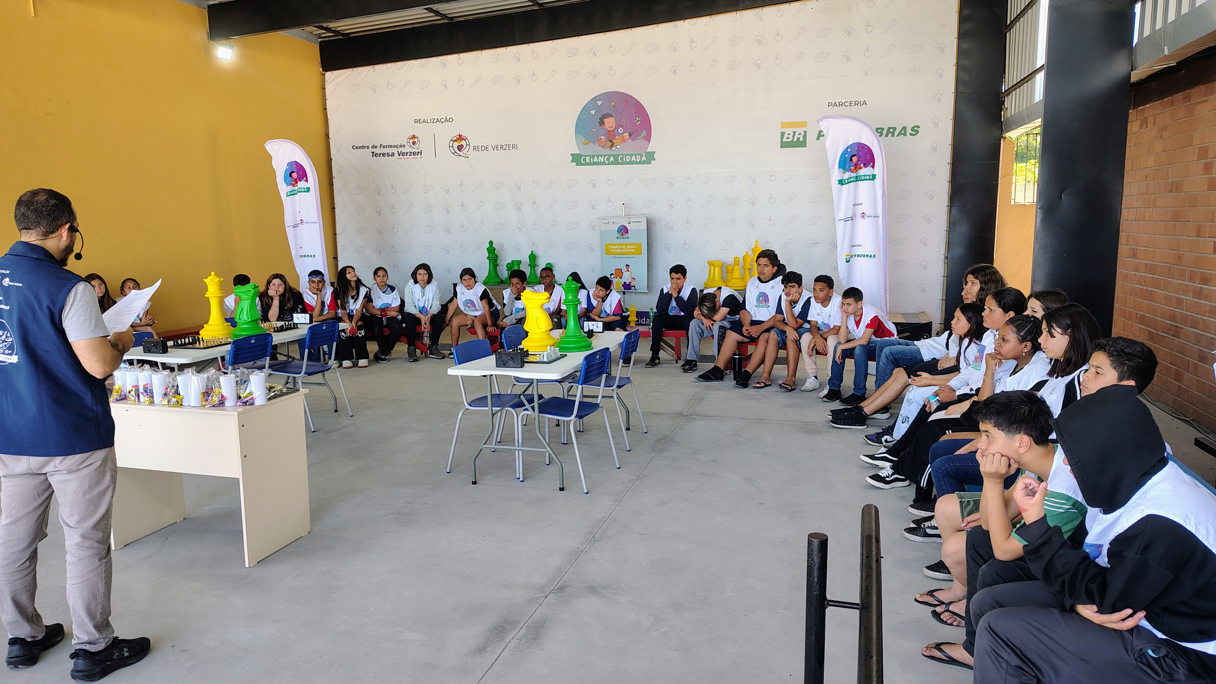Em 21 de outubro, o Projeto Criança Cidadã realizou o Torneio de Jogos Colaborativos, na categoria xadrez, reunindo educandos em um momento de aprendizado, integração e desenvolvimento de habilidades. A atividade faz parte das ações da oficina de Jogos Colaborativos, uma das dez oficinas oferecidas pelo Projeto, que busca contribuir para a formação integral de